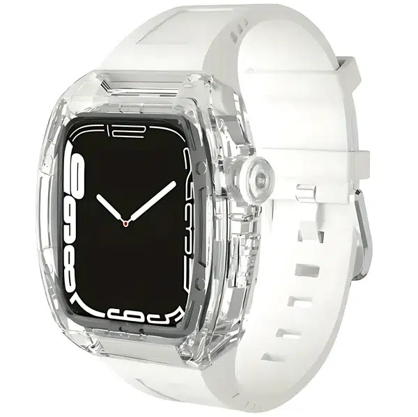 Compatible: only fit for Apple Watch 44 mm and 45 mm, Luxury watch band/Rubber watch band + clear watch case.